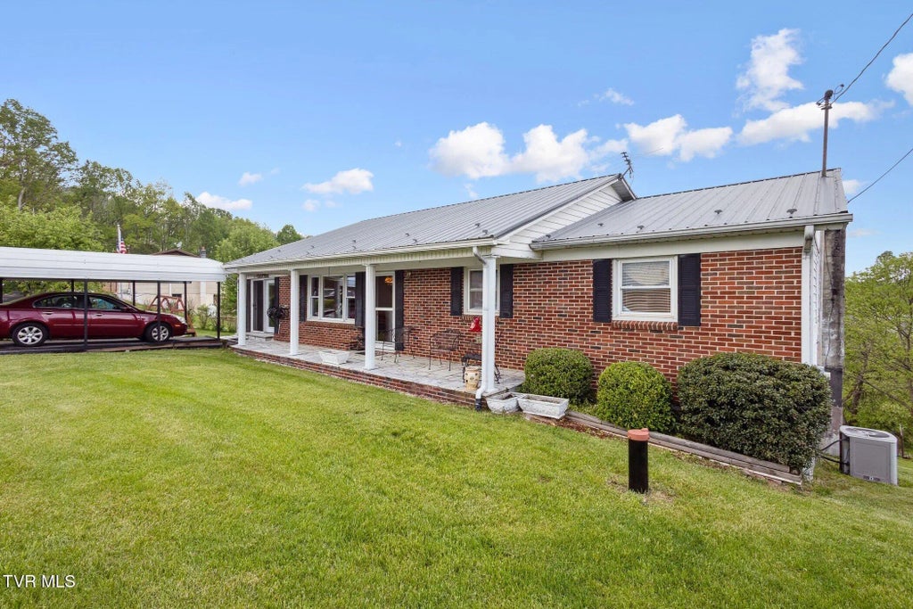 Charming Brick Home with Breathtaking Mountain Views! Charming brick ranch home located at the end of a peaceful Cul de sac, this one owner home has 3 bedrooms and 3 full baths including the primary bedroom having a private full bathroom. Large kitchen with beautiful custom cabinets that include organizers, built in desk and granite countertops that give plenty of counter workspace for the chef. Eat in kitchen/dining area leads out to the deck with Trex boarding for the maintenance free outside space to enjoy the view of mountains and fields while you sip that morning coffee or unwind in the evening. Large den with wonderful details such as wood beams and the gas log fireplace flanked with built ins. Living room with a large window for extra light and space for entertaining. Finished basement has many features and options such as an in-law suite, guest suite, or studio apartment for extra income. Features are glass sliding door, full kitchen with appliances, an island for food prep and a room with built in shelving to store canned food that stays cool. There is also a wood/coal stove for an additional heating source along with the heat pump. Current craft room/office in basement could also be used for a 4th bedroom with a closet. Laundry room features a full bathroom, wall cabinets and room for a full freezer. Workshop area located in basement for plenty of storage needs with shelving. On the exterior of the home, you will find a shed, garden area, water feature, carport, and fruit trees. Metal roof enhances the curb appeal of this wonderful home. Do you need furniture? The owners are willing to sell most of the furniture with the home! Well maintained and move in ready home so don't miss out on your opportunity to own this great property.