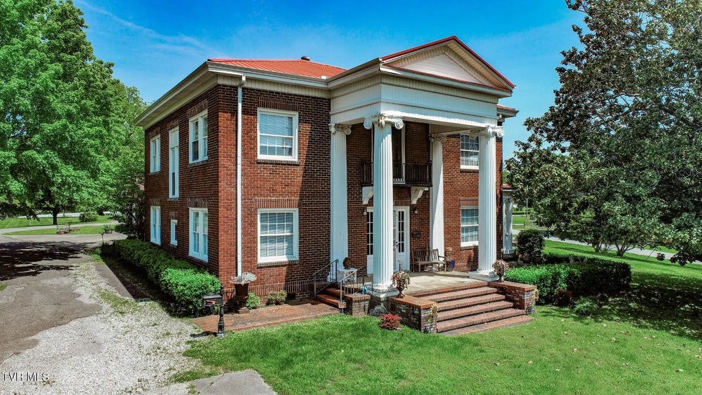 Historic 5 BR/4BA, 3,612 sq. ft. classic antebellum style brick known as ''SUNNY SIDE'' was completed in 1915 by W.B. Stokely, Sr., founding member of Stokely Van Camp, Inc. This magnificent historic home harbors an american success story with one of the largest corporations in the United States. The Stokely Family pioneered the canning Industry & Introduced Gatorade to the world! Prestigious location high on the bluffs of Newport along the Pigeon River offering mountain & city skyline views. Lovingly maintained, spacious & move in ready offering a spacious master suite w/fireplace-private balcony & full bath. 8' pocket doors throughout, crystal chandelier in dining RM, 2 fireplaces, split HVAC & gas radiator, gas water heater, beautiful stairway & enclosed elevator to 2nd floor (inoperable). Original character enhanced with comfort and current luxuries, original hardwood graces main & 2nd level, tons of closet & storage space. Beauty of the interior flows to huge outside veranda w/locally quarried stone patio & cut stone walkways. Perched on 2.2 landscaped acres boasting flowering shrubbery, sunken garden, mature Chestnut Trees, huge Magnolia & Japanese Tulip Tree. Attached guest house w/2 car carport offers attached 1 car garage currently used as storage & unfinished. Some upgrades include newer roof, gas boiler & insulation. Current owner is only 2nd owner outside original family owners in 125 years. This Historic home is Perfect for bed & breakfast! Relax after a hike in The Smokies or a fun filled day at Dollywood or Gatlinburg! Newport is considered the peaceful side of the Smokies and this property is no exception! Close Proximity to Pigeon Forge, Dollywood, Gatlinburg, Dandridge, Morristown, Hot Springs, The Great Smoky Mtn National Park, Cosby & Big Creek Campground, Appalachian Trail, Douglas Lake, Cataloochee Valley & Maggie Valley! Welcome to The Smoky Mtns, Enjoy the Very Best of Tennessee's beauty, Natural Resources & Generous Hospitality! Drone pict