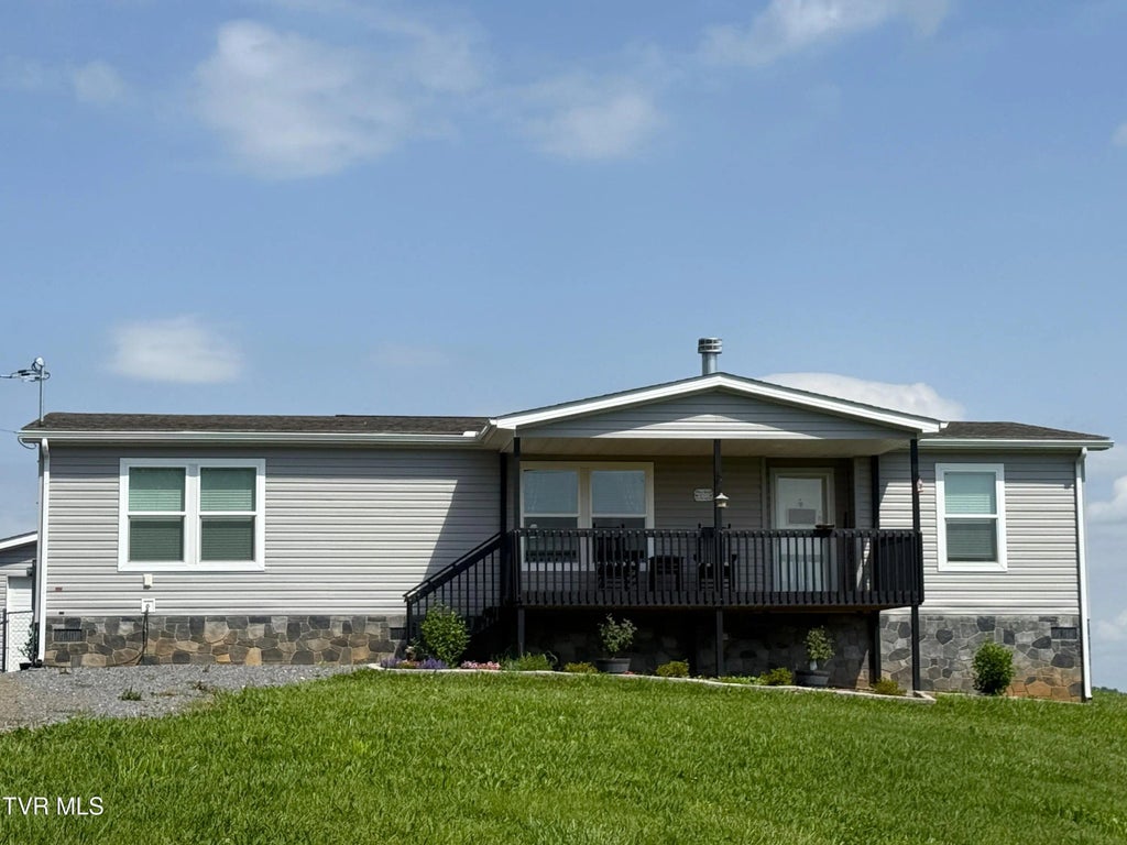 Discover the charm of this immaculate 2023 Clayton home, nestled on a picturesque 1-acre lot with breathtaking mountain views. This beautiful residence boasts a spacious 1540 sq ft, featuring an open floor plan with 3 bedrooms and 2 bathrooms. The home exudes elegance and quality, from the crown molding to the sheetrock walls and the stunning linoleum flooring throughout. Recessed ceiling lighting adds a touch of modern sophistication to every room. The backyard is partially enclosed with a chain-link fence, making it perfect for families with pets or small children. The heart of the home, the kitchen, is a chef's delight with ample cabinetry, a large island for gatherings, a wall oven, electric cooktop, dishwasher, refrigerator, and microwave. The living room, with its beautiful wood-burning fireplace, seamlessly connects to the kitchen and dining area, creating an inviting space for entertaining. The master bedroom is designed to accommodate large pieces of furniture and offers a luxurious en-suite bathroom complete with a walk-in tiled shower, soaking tub adorned with a chandelier, double vanities, and makeup vanity. Guests will feel at home in the spacious guest bedrooms and bath. The laundry room is conveniently located off the dinning room with ample space. Both the front and back covered porches offer stunning views of the mountains and countryside, perfect for enjoying peaceful mornings and evenings. Located in the quaint town of Parrottsville, this home is just a 15-minute drive to Newport for all your shopping needs, and under an hour to the attractions of Gatlinburg and Pigeon Forge. Don't miss out on this exquisite property that combines modern luxury with serene country living.