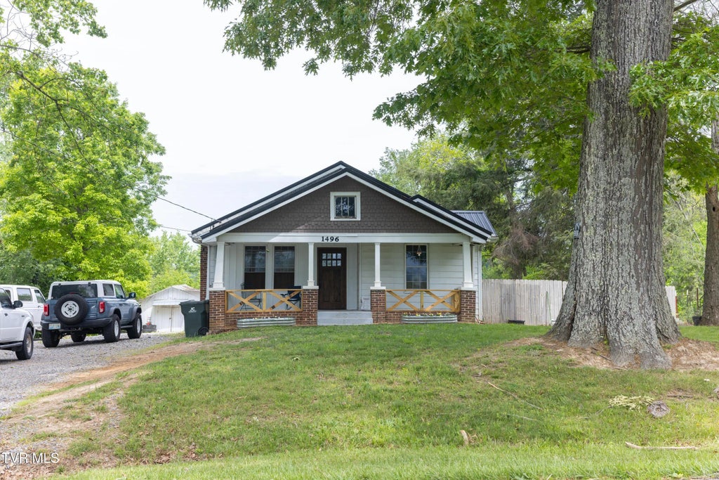 This 2 bedroom, 1 bathroom home is situated on 0.74+/- acres, located conveniently between Johnson City and Greeneville. This bungalow style home features single level living. Many updates throughout, while still maintaining the original charm. Inside you will find hardwood floors throughout living area and bedrooms. Tile floor in kitchen and bathroom. Step out onto the front porch for picturesque mountain views. The expansive lot features a fenced in back yard, raised garden beds, and 2 outbuildings. Information in this listing obtained from third party and/or tax records. Buyer(s)/ Buyer's agent to verify all information.