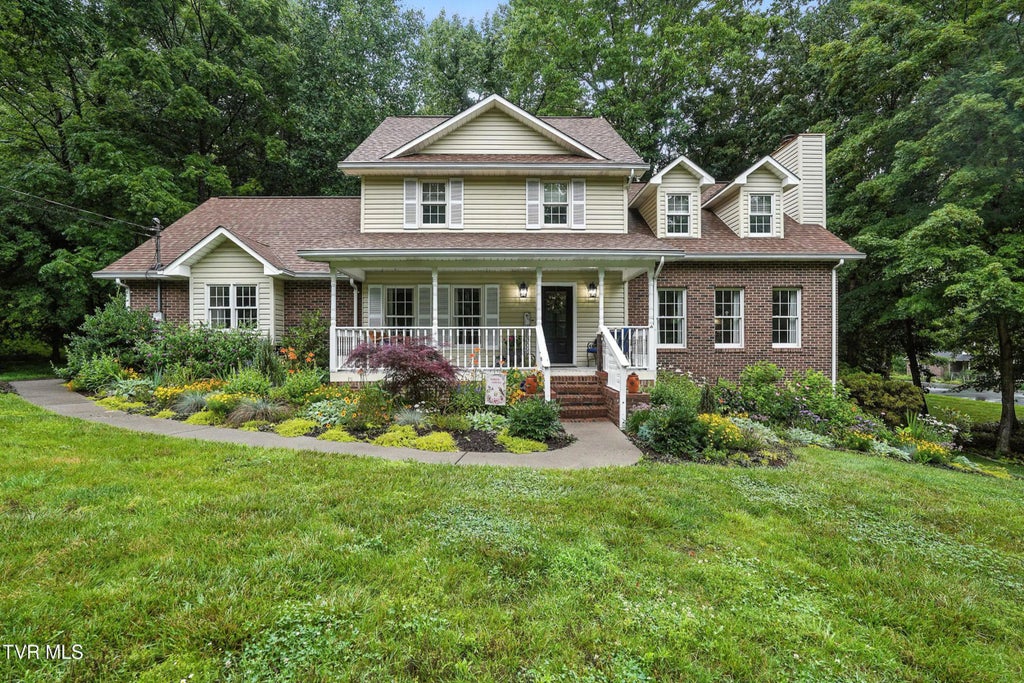 This meticulously maintained traditional home is located on a gorgeous, landscaped corner lot in a quiet mature neighborhood. You will feel welcomed as you approach the large inviting covered front porch. As you enter the foyer you will notice the gleaming hardwood flooring throughout that leads to a spacious living room with a pretty fireplace and large formal dining room. The bright kitchen offers pretty appliances and amber cabinetry. Leaving the kitchen, you will find a breakfast area and comfortable den that leads to a sizable back deck that overlooks the woods and nature. There is a main level laundry room conveniently off the kitchen and a half-bath. A cozy screened-in porch completes the main level. The upper-level features oversized 3 bedrooms plus a flex room that could be 4th bedroom, home office or playroom, 2 full baths and storage galore. The lower level includes a spacious storage and workshop area, which features additional storage space and is accessible through a garage door entrance suitable for lawn equipment. Home is beautifully decorated and is move-in ready. Prime location near I-26 and to all of the Tri-Cities area. Call today for your private showing. All information to be verified by buyer/buyer's agent.