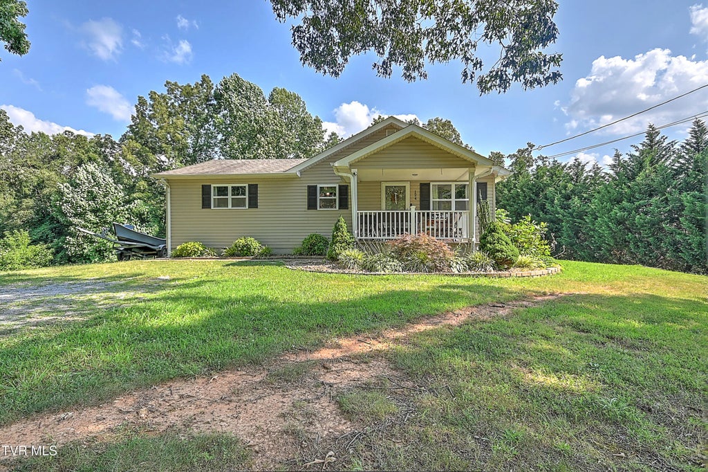Charming, updated, and move-in ready — welcome home to 124 Zeb Grindstaff Road in beautiful Elizabethton, Tennessee. Tucked away on a peaceful cul-de-sac just minutes from downtown, this 3-bedroom, 2-bath ranch-style home offers the perfect mix of modern updates and cozy charm. Inside, you'll find a comfortable, one-level layout and a thoughtfully designed split-bedroom floor plan. The inviting kitchen boasts white cabinetry, stainless steel appliances, and a sunny eat-in space just off of the living room. The private primary suite includes its own full bath, while two additional bedrooms share a beautifully renovated bathroom with custom tilework. Step outside and take in the peaceful mountain views from your covered front porch or enjoy the generous backyard on the new Trex deck — ideal for pets, gardening, or entertaining. A detached storage building offers plenty of room for tools or hobbies, and the gravel driveway provide ample parking. With updates throughout, a large yard, and a convenient location near schools, shopping, and the Cherokee National Forest, this home checks all the boxes for comfort, style, and everyday living. Buyer/Buyer Agent to verify all info.