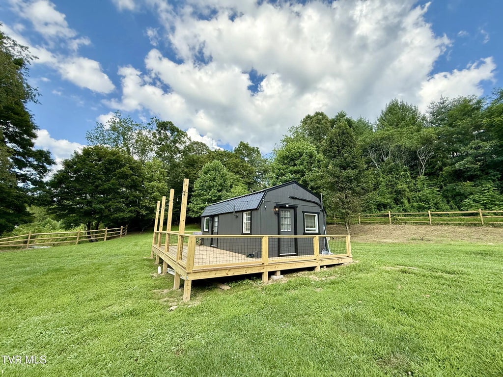 Enjoy a great getaway along the banks of Doe Creek in East Tennessee from this furnished 1BR/1BA converted tiny home which has recently been completely updated inside and out with new shiplap walls, tongue and groove ceilings, flooring, electrical, plumbing, insulation, fixtures, appliances, decking, paint and more. Property offers 1.38 unrestricted acres of mostly gentle sloping property overlooking Doe Creek with firepit, outbuilding, recent split rail fencing, gated entrance, easy access, and additional building sites. Property has easy access to utilities on lot with potential to add additional tiny homes, campers, etc. and would be an ideal set up for vacation rentals. Conveniently located between Mountain City and Watauga Lake near Doe Mountain Recreation area.