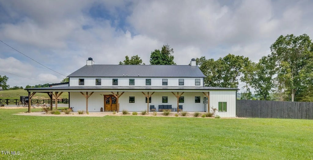 MOTIVATED SELLERS! Dream Home and Investment Opportunity, this property has it all!! This one-of-a-kind Airbnb offers a 6600 sq ft custom-built barndominium with 2 car garage sitting on nearly 3 acres in the scenic Tennessee countryside. Plus, a 60x40 detached 3-bay garage/shop. This 5-bedroom, 3-bath layout showcases 32-foot cathedral ceilings and expansive windows that fill the space with natural lighting. A cozy fireplace adds warmth and charm to the main living area, creating an inviting atmosphere for gatherings throughout the year. The master suite is conveniently located on the main level featuring a spacious master bedroom, a full bath with double vanities, a beautifully tiled shower, and a large walk-in closet.