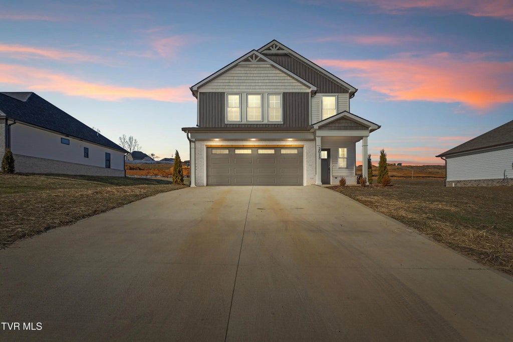 Classic Charm & Modern Convenience in Gray, TN This completed two-story traditional home offers timeless style and functional design in the heart of Gray. The main level features a spacious family room with a cozy fireplace and built-in shelves perfect for displaying books, artwork, or your favorite décor pieces.plus a chef-inspired kitchen with white cabinets, a black island, quartz countertops, and a pantry. Enjoy casual dining in the eat-in area, along with a convenient half bath. Upstairs offers a versatile loft, dedicated laundry room, and a luxurious primary suite with tiled shower, double vanity, and walk-in closet. Outside, relax on the covered patio overlooking a level, gently sloping yard. Low HOA fee of $150/year. 1-year builder warranty included. Listing agent is related to seller.