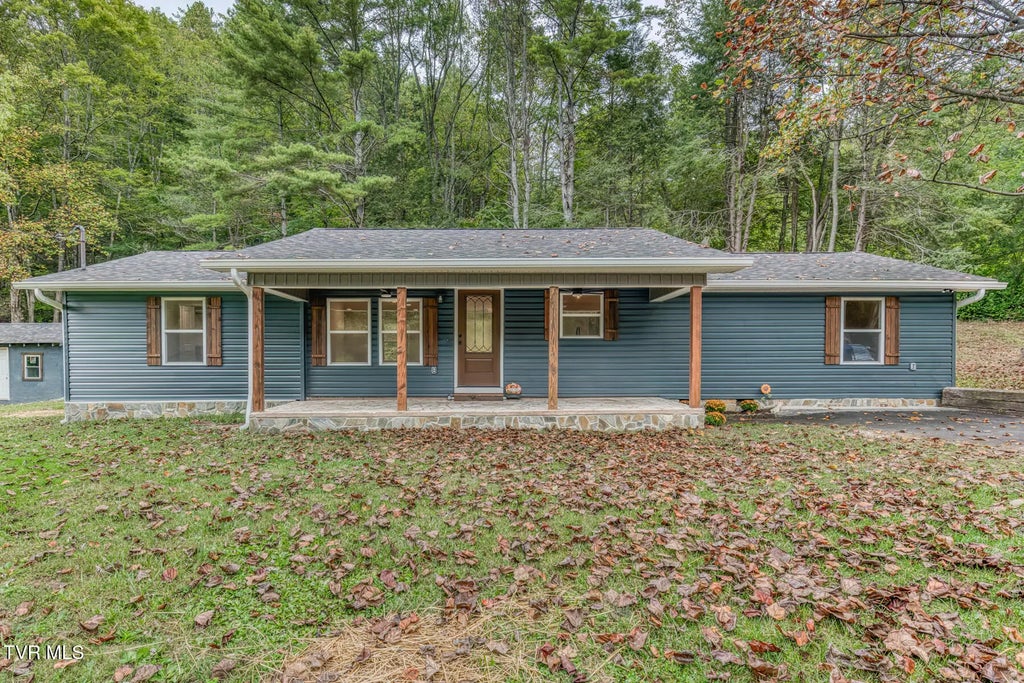 Welcomed by a beautiful covered front porch, this home has been totally remodeled with gorgeous selections throughout. An open floor plan offers living room and kitchen with vaulted ceiling. The large primary suite has walk in closet and the primary bath has a gorgeous tiled shower. Two additional bedrooms with a shared bath. The kitchen offers new appliances, new cabinetry and beautiful granite countertops, plus walk in pantry. The dining room has patio door opening to new deck. Dedicated laundry room for convenience. An additional living space is perfect for den, office or playroom. Almost everything is brand new including the siding, roof, windows, heat pump, doors, new wiring and light fixtures, new plumbing and faucets, beautiful new flooring throughout. A 12 X 24 outbuilding with approx 7 X 14 offset has a new roof and windows. Plus a concrete pad is ready for a gazebo or additional outbuilding.