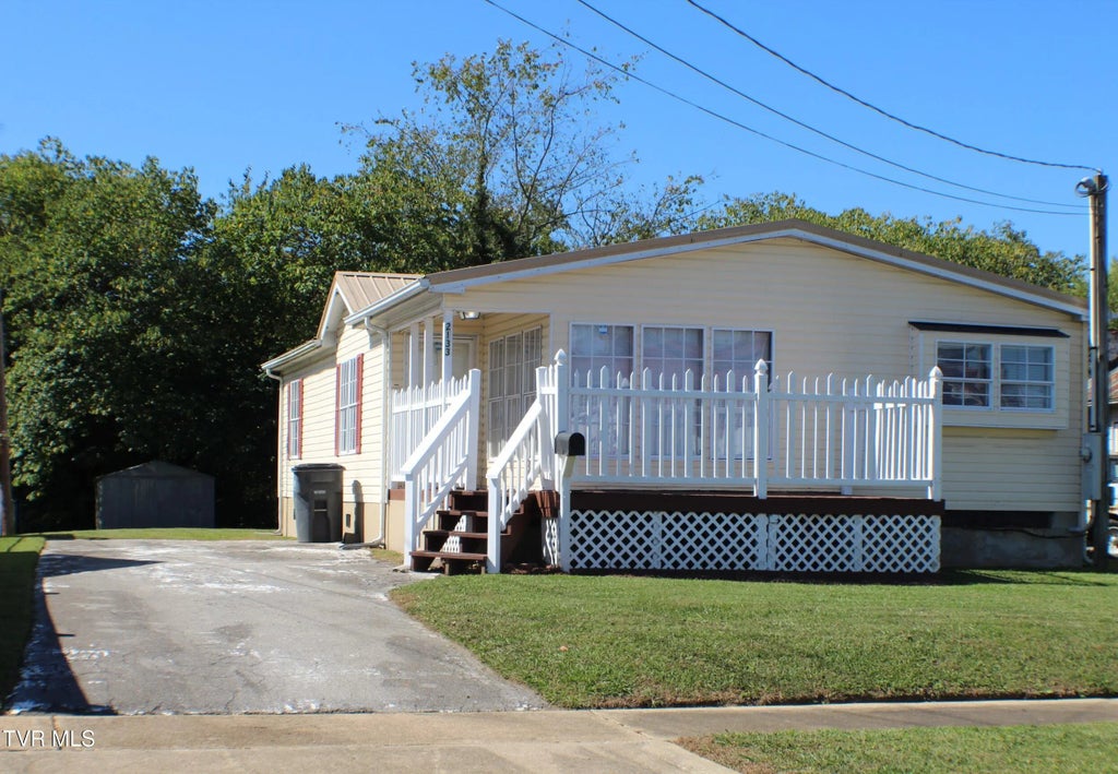 Cute and cheery with a picket fenced front porch is this one level 3 bedroom, 2 full bath double wide home on a nice LEVEL lot. Conveniently located near schools, shopping, restaurants and public transportation. Vaulted ceilings throughout. Large bright kitchen area with plenty of cabinet storage and counter top space PLUS a pantry and a generous sized dining area. Primary bedroom with private bath and walk-in closet. Storage building in back yard will convey. Home has newer heat pump, hot water heater, metal roof and gutters and carpet. Home sold AS-IS. Buyers/buyers agent to verify all information.