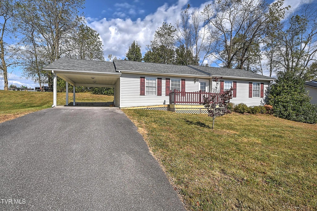 GREAT ONE LEVEL!!! This one level ranch has an absolutely huge living room, 3 good sized bedrooms, 2 full baths, a seperate dining space and an oversized carport with plenty of covered storage. The Galley kitchen has its own entrance as well as a front entrance with a new deck with a ramp. A new architectural shingle roof and a brand new Heat Pump were installed 3 years ago in 2022. New carpet was installed in 2024, the flooring in the living room, kitchen, dining room and hallway was installed less than 8 years ago. This home has been in like new condition for most of the time the current owner has had it. Located less than 2 minutes from main street and exit 17, this house has a lot to offer. Below the property is a walking trail (public bike path that connects to the creeper trail) that goes all the way through town. You can also access 40 acres of public land that connects to the back yard of this property. That land connects to and includes the Muster Grounds. Agent is 100% owner of the company that owns this property.